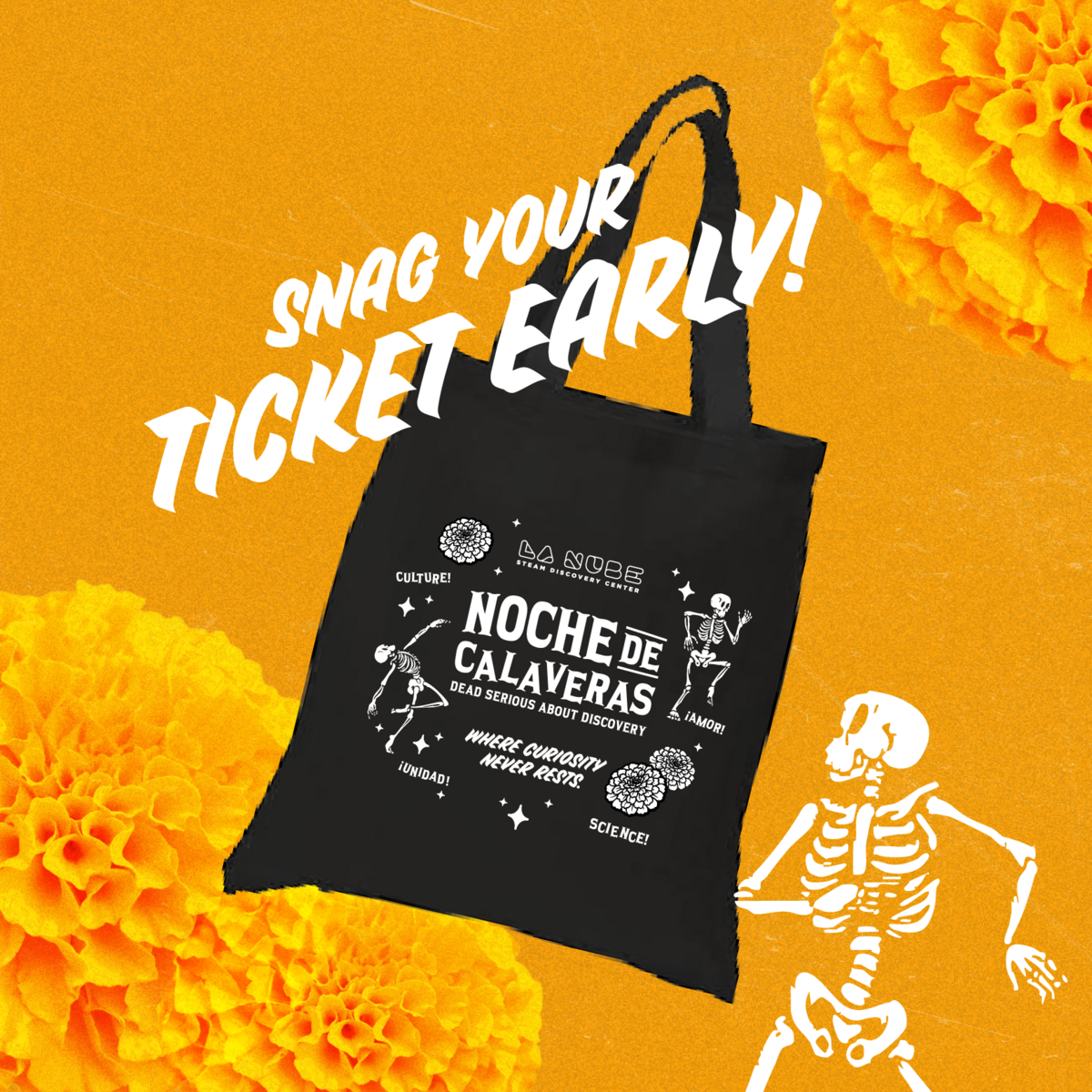 💀 The first 250 tickets will include an exclusive Día de Los Muertos tote bag!